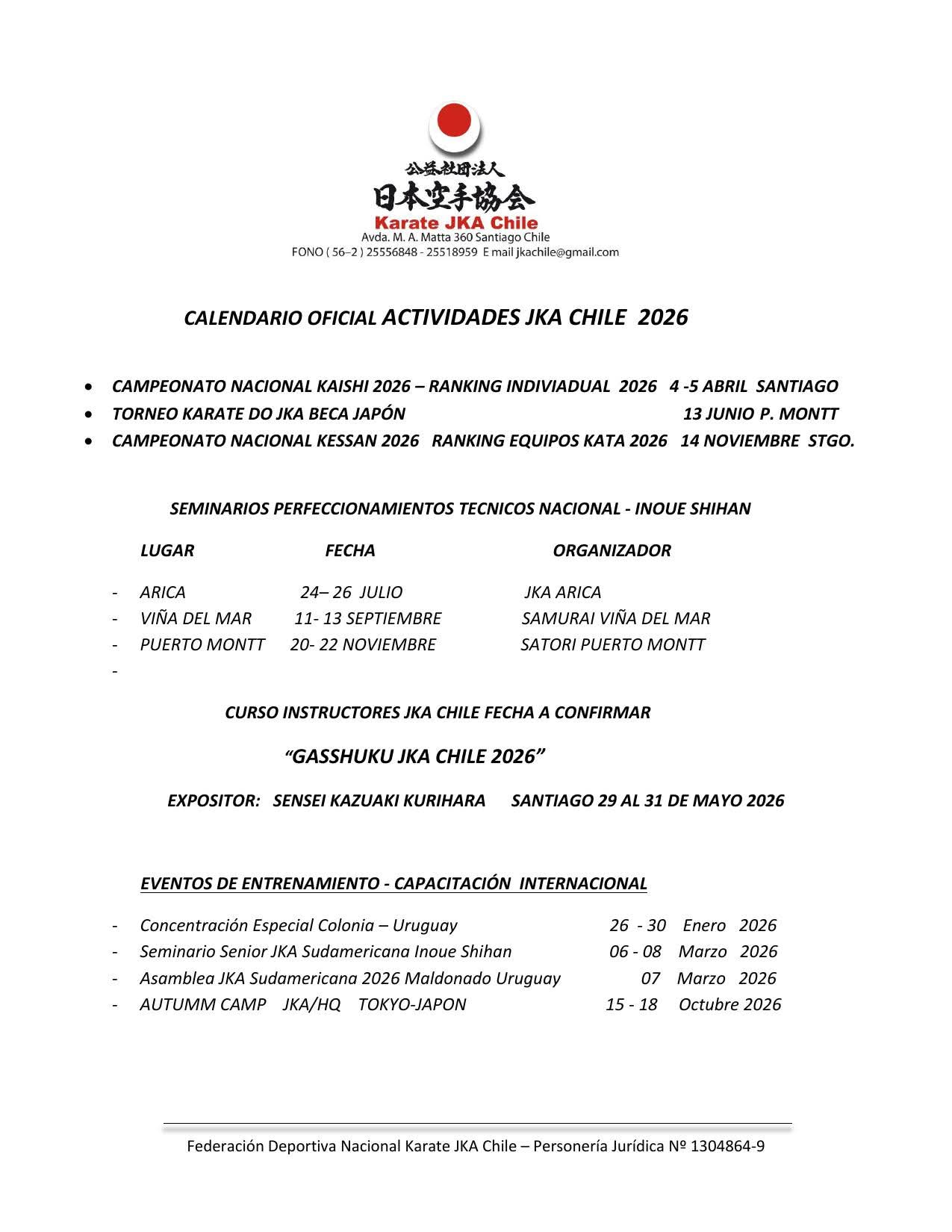Calendario JKA Chile